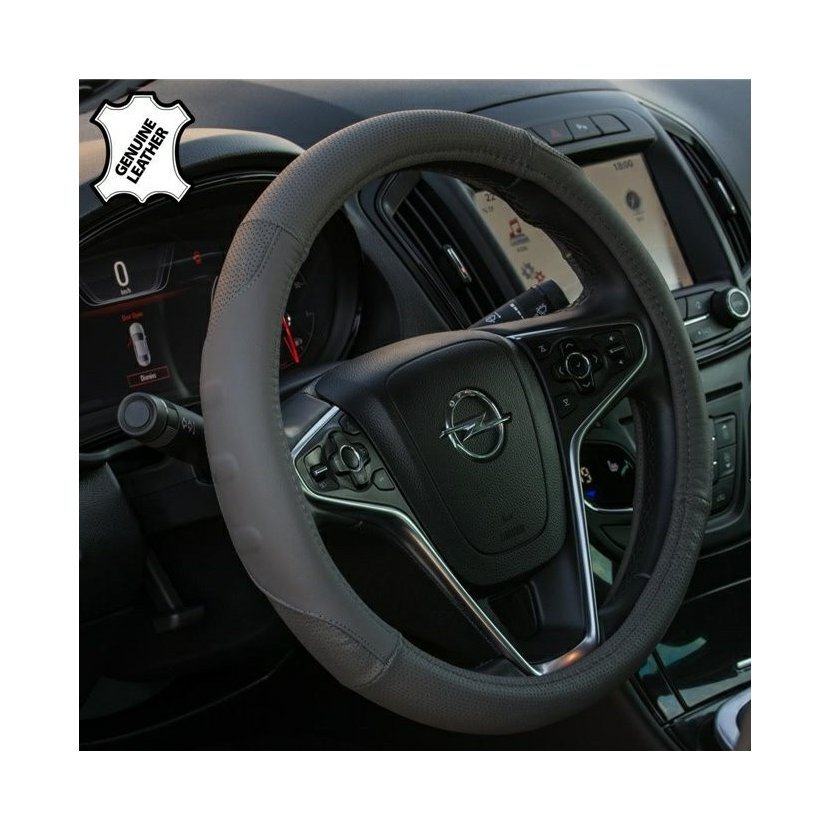 Pravá šedá kůže působí luxusně a zároveň je velmi odolná. Elegantní performace a prošití dodává potahu sportovní charakter a zvýrazňuje interiér vozu. Potah výrazně zlepšuje úchop volantu, omezuje klouzání rukou a zvyšuje jistotu při řízení.