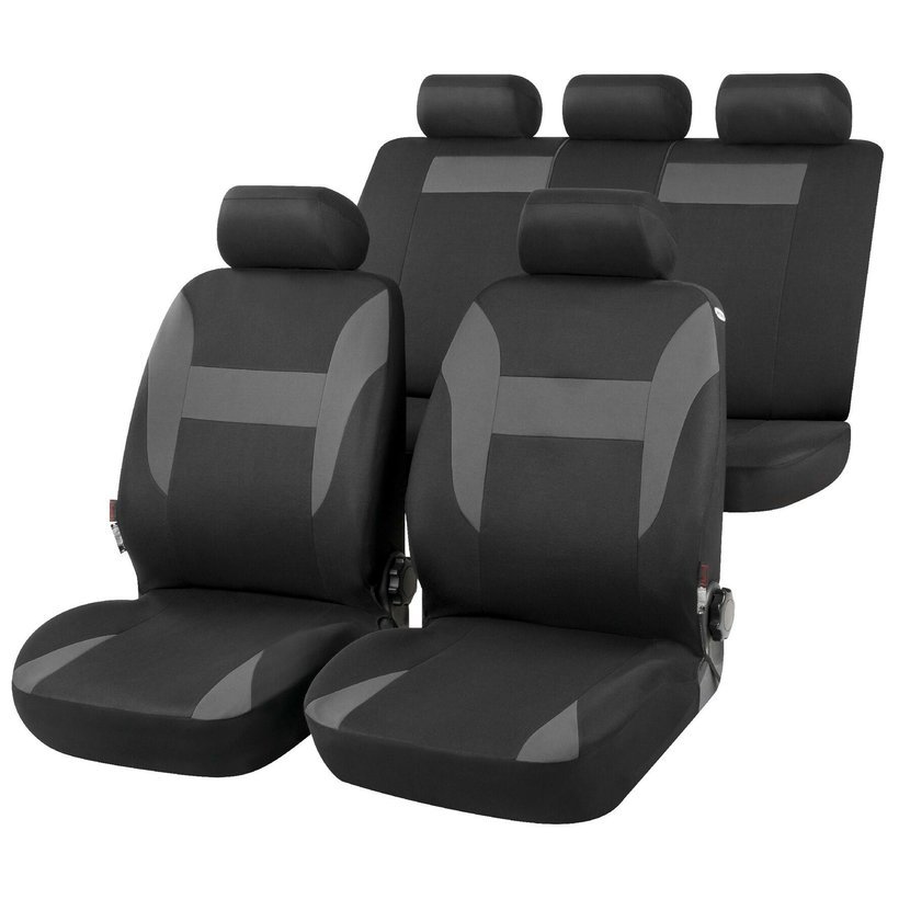 Potahy sedadel NAMPA v šedo - černé barvě jsou kvalitně vyrobeny a zajišťují elegantní vzhled vašeho vozu. Potahy se také snadno nasazují. Po odstranění opěrek hlavy můžete jednoduše navléknout potahy přes sedadla a upevnit je pod sedadlo pomocí háčků. Integrovaný systém slotů umožňuje vrátit opěrky hlavy zpět na místo, aniž byste museli přeříznout potah sedadla. Vysoce kvalitní materiál je odolný a snadno se čistí. Proto potah sedadla vydrží obzvláště dlouho a dělá z každé cesty příjemný zážitek.
