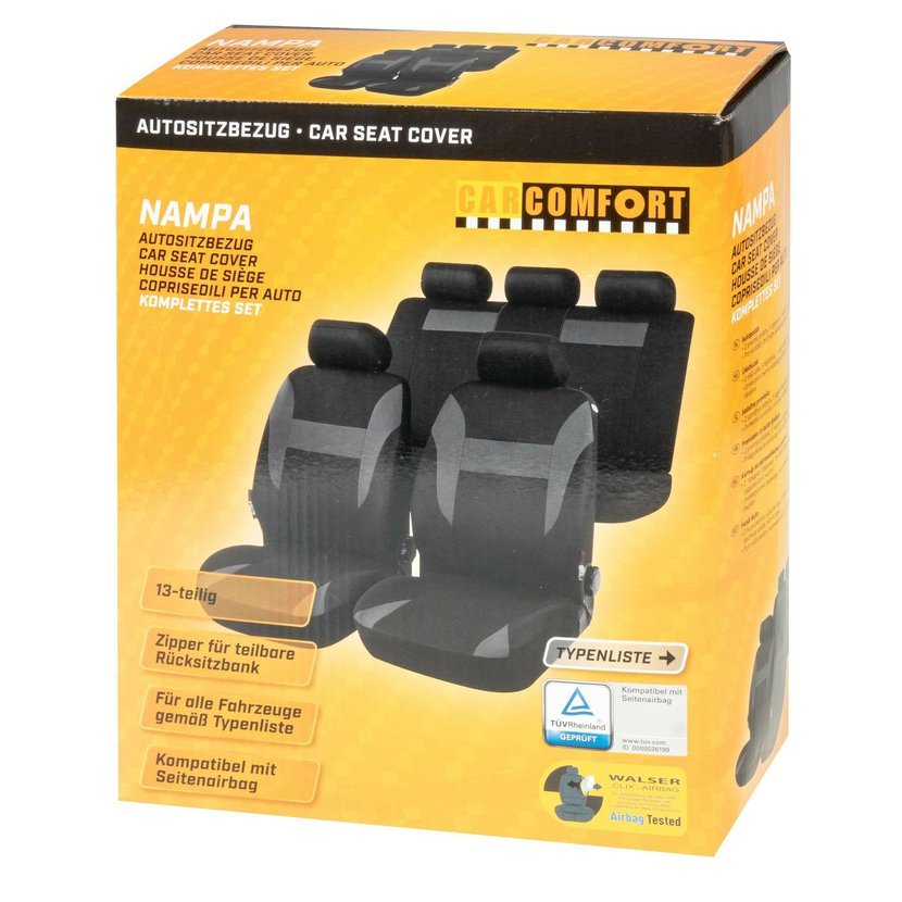 Čas od času chcete svůj vůz přepracovat a dát mu znovu nový vzhled. S potahy autosedaček NAMPA to lze provést bez námahy a během chvilky budou vaše autosedačky vypadat nově a úplně jinak. Součástí dodávky jsou 2 potahy předních sedadel, 2dílné, 1 potah zadních sedadel, 4dílný, 5 potahů opěrek hlavy. Vaše sedadla jsou tak optimálně chráněna před nečistotami a opotřebením.