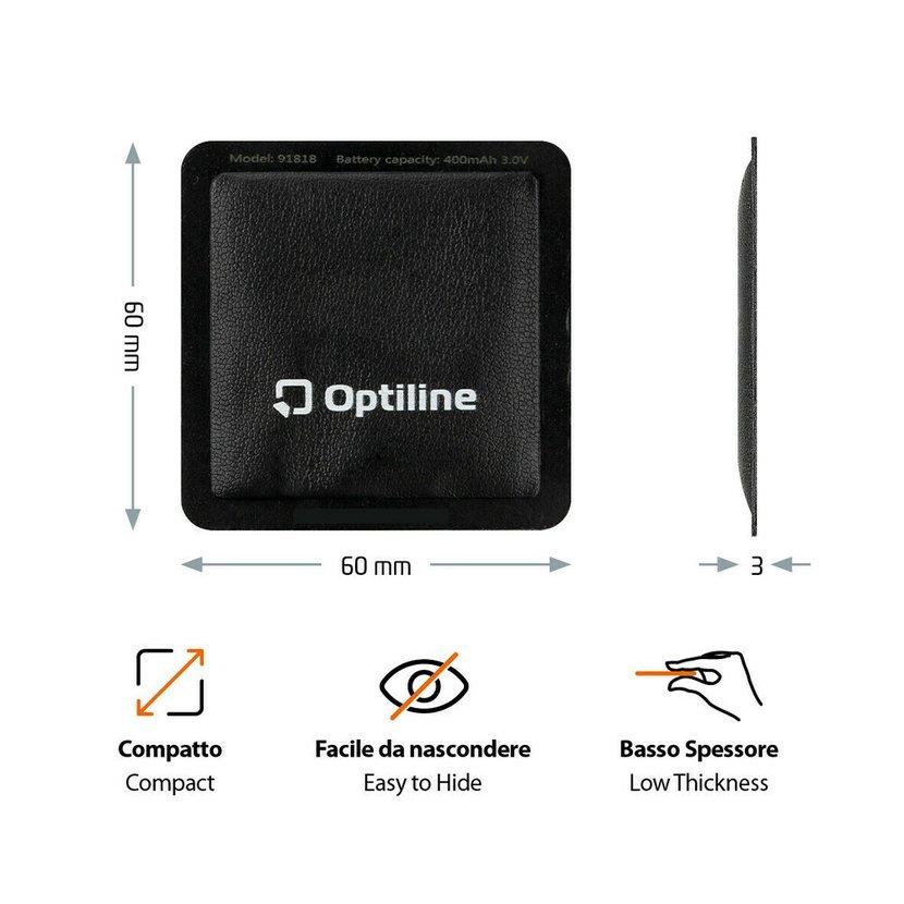 Díky ultratenkému provedení s tloušťkou pouhé 3 mm a kompaktním rozměrům 60 × 60 mm lze lokátor snadno umístit do peněženky, tašky, kapsy nebo jej diskrétně připevnit na různé vybavení bez výrazného zvětšení objemu.