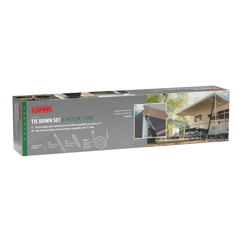 Sada je univerzální a vhodná pro markýzy typu Omnistor i podobné konstrukce. V balení najdete vše potřebné pro okamžité použití.