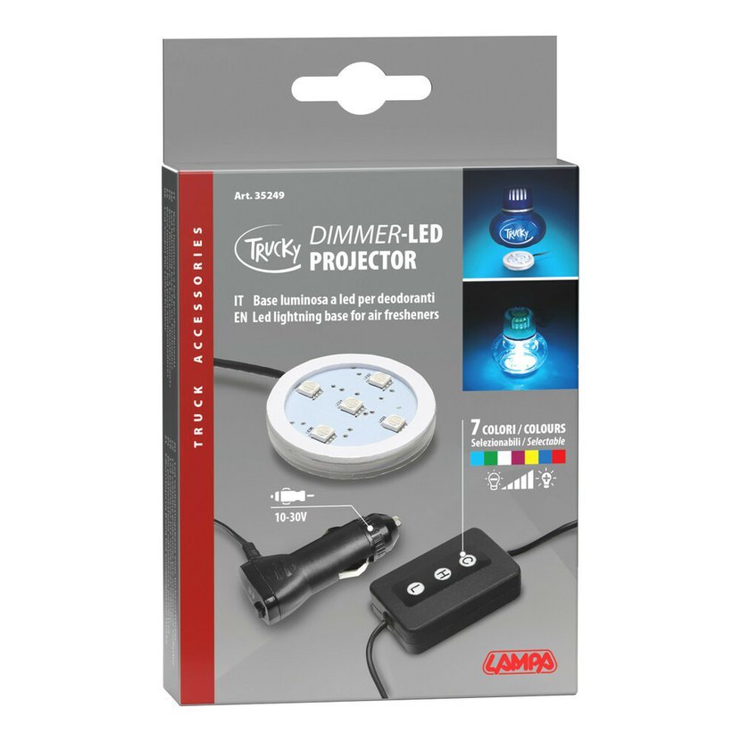 Samonalepovací základna s LED osvitem vůní TRUCKY. Světlejší a tmavší osvit, 7 barev. Napájení z 12V nebo 24V zásuvky.