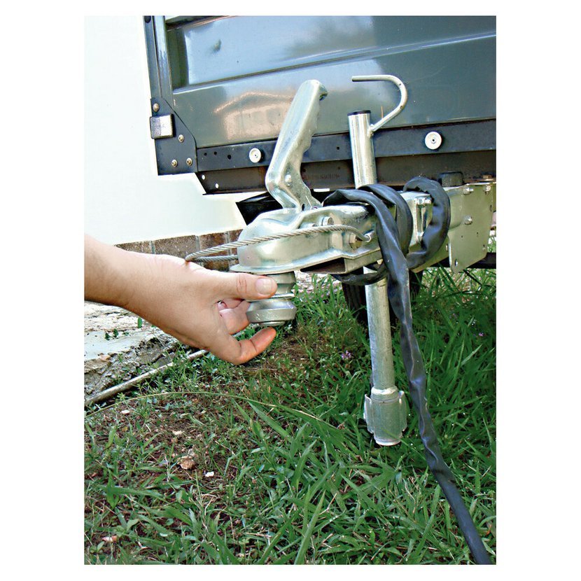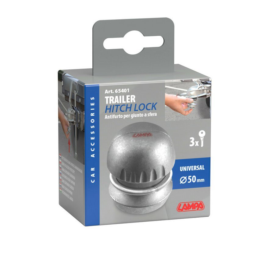 Univerzální Trailer Hitch Lock je praktické zabezpečení pro všechny běžné přívěsy s tažnou koulí Ø 50 mm. Díky jednoduchému mechanismu zámek účinně zabrání nechtěnému připojení přívěsu k vozidlu a chrání tak váš majetek před odcizením.